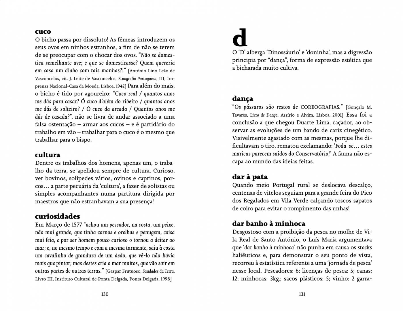 Este livro, parente afastado dos bestiários medievais, apresenta em 400 páginas, numa prosa carregada de referências literárias, seguindo de A a Z, as diferentes espécies animais presentes em Portugal. E evoca, quase sempre de modo irónico, o interagir do homem com elas. Na maior parte das vezes falando do homem...