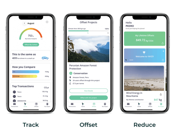 Outra startup que usa a sua missão de reduzir a pegada ecológica para cativar os seus utilizadores e investidores é a Yayzy. Trata-se de uma app bancária, que mede a pegada carbónica de cada compra que realizamos, ajudando-nos a quantificá-la com mais precisão e a atuar em conformidade para minimizar ou compensar o nosso impacto ambiental. Quando faltam mais de 30 dias para o final da campanha, esta startup já conseguiu angariar mais de 100% do montante que pretendiam.