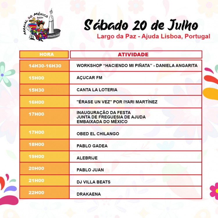 20 e 21 de julho no Largo da Paz na Ajuda, volta a festa Mexicana com música, artesanato, dança, gastronomia e ateliers. Participa!