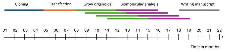 - Clonagem: O projeto começará com o design e clonagem do DNA plasmídico para a metodologia CRISPR/CAS9, o que levará cerca de quatro meses.