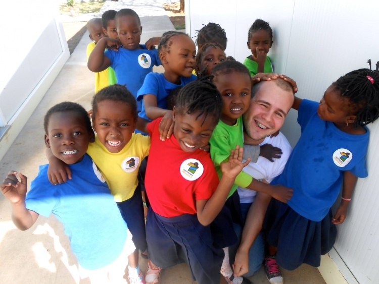 Fotografia dos voluntários com as crianças durante o projecto + Agradecimentos anteriores (portes de envio por correio incluídos para Portugal)