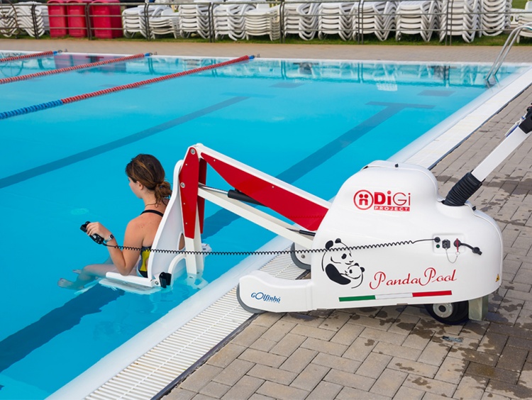 Os meus colegas da Natação Adaptada e eu acreditamos que todos devem poder desfrutar da piscina com conforto e segurança e o elevador portátil para piscina PandaPool vai permitir que todos entrem na piscina com segurança, conforto, autonomia e dignidade. O PandaPool tem tração automática, ou seja, não implica esforço por parte de quem o opera, 8 níveis de segurança, funcionamento elétrico, hidráulico e motorizado e, entre outras especificidades, permite a entrada na água em apenas 25 segundos.