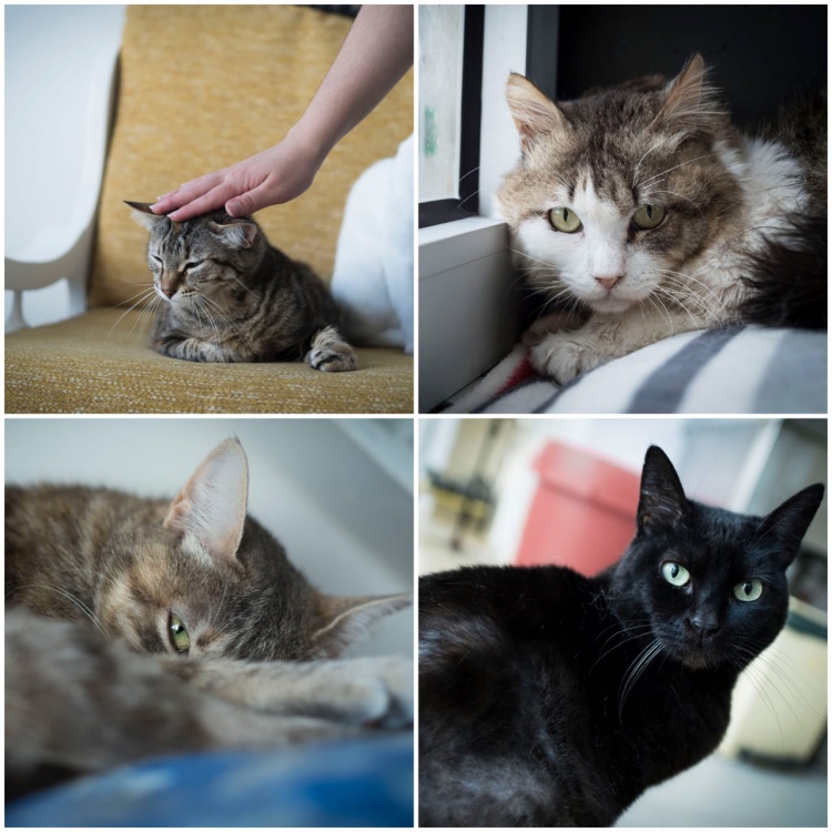 No gatil, temos, neste momento, 74 tarecos disponíveis para adoção, 22 em tratamento médico. Além disso, há 20 gatos em FAT (Famílias de Acolhimento Temporário) cujas despesas são também suportadas pela associação, e quatro gatos FeLV Positivos que estão numa sala à parte, e exigem supervisão mais detalhada. Também fazemos medicações e supervisão diariamente a todos os tarecos ao nosso cuidado e deslocamo-nos a consultas às clínicas veterinárias pelo menos duas vezes por semana.