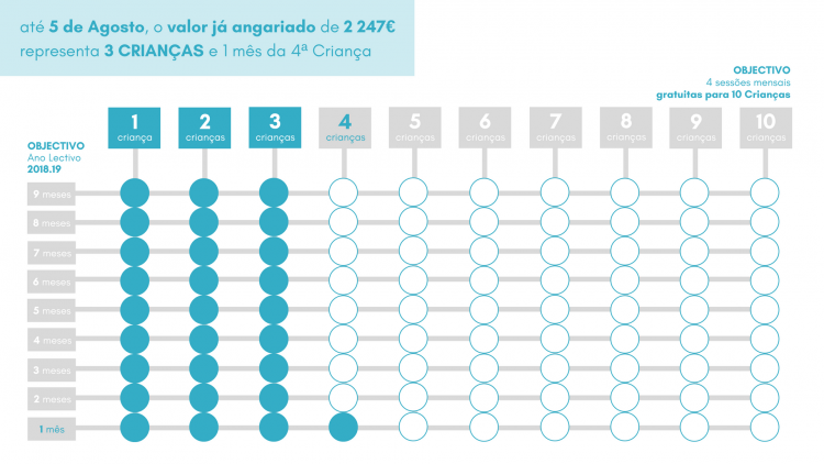A sua CONTRIBUIÇÃO É MUITO IMPORTANTE para atingir o OBJECTIVO da Campanha ACTIVIDADES EQUESTRES INCLUSIVAS e proporcionar uma mudança positiva na vida de crianças em risco de exclusão, durante o ano lectivo 2018/19.Bem Haja! até sexta-feira, 22 de Junho, o valor angariado representa 0 CRIANÇAS e 7 meses da 1ª criança. Ajude a DIVULGAR esta campanha para conseguir atingir o objectivo de 10 CRIANÇAS!