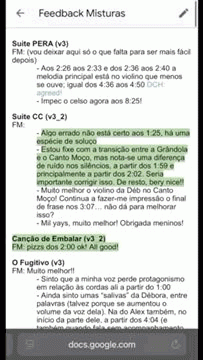 O vídeo que acompanha este email mostra-nos a ouvir as misturas e a escrever anotações à medida que a música acontece.