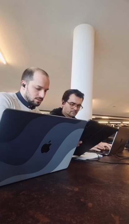 Nesta imagem estamos com o Francisco, nosso técnico de som e mágico profissional, em fase de edição do álbum Cravos & Cordas. É um trabalho minucioso, feito de escuta atenta e decisões que, para quem escuta a versão final, se tornam invisíveis... mas que são essenciais para dar a forma final à música. É aqui que muitos dos detalhes ganham vida.