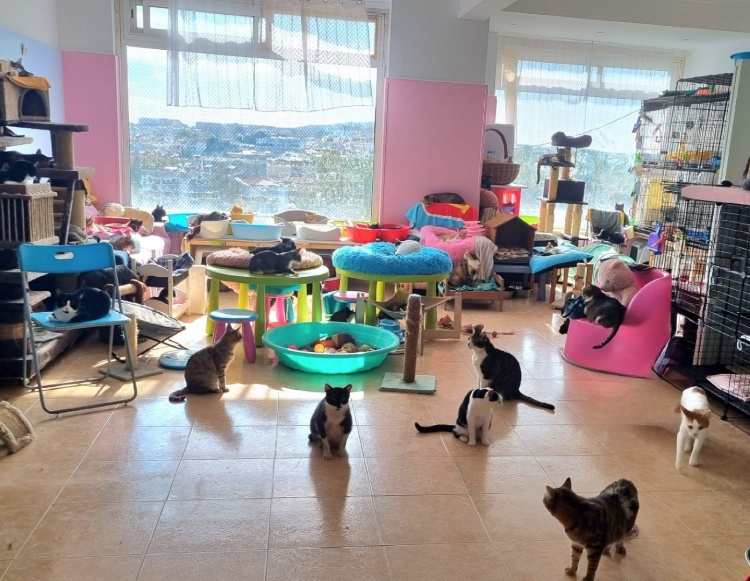 We have around 100 adult cats and 20 babies/young cats in our adoption space