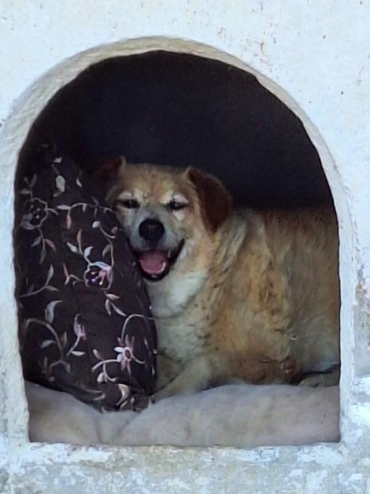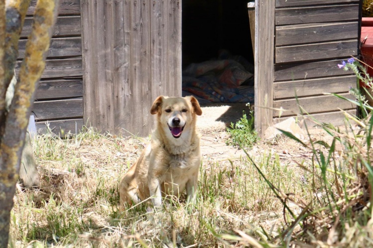 There are several dogs roaming free in our shelter. Right now, they are Merlin, Tulipa, Brisa, Rossio, and Chavo. They have a shelter just for them, which has been repaired over the years, but is already in need of renovation: it leaks and lets in wind, making it unsuitable for housing older dogs.