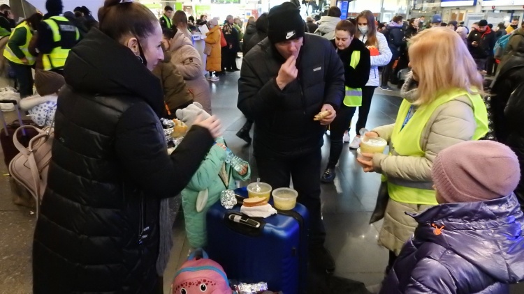 Meals are also delivered to Warsaw's central railway station, where around 2000 women and children are currently sleeping on the floor, waiting for a train to the other side of Poland and to other countries.