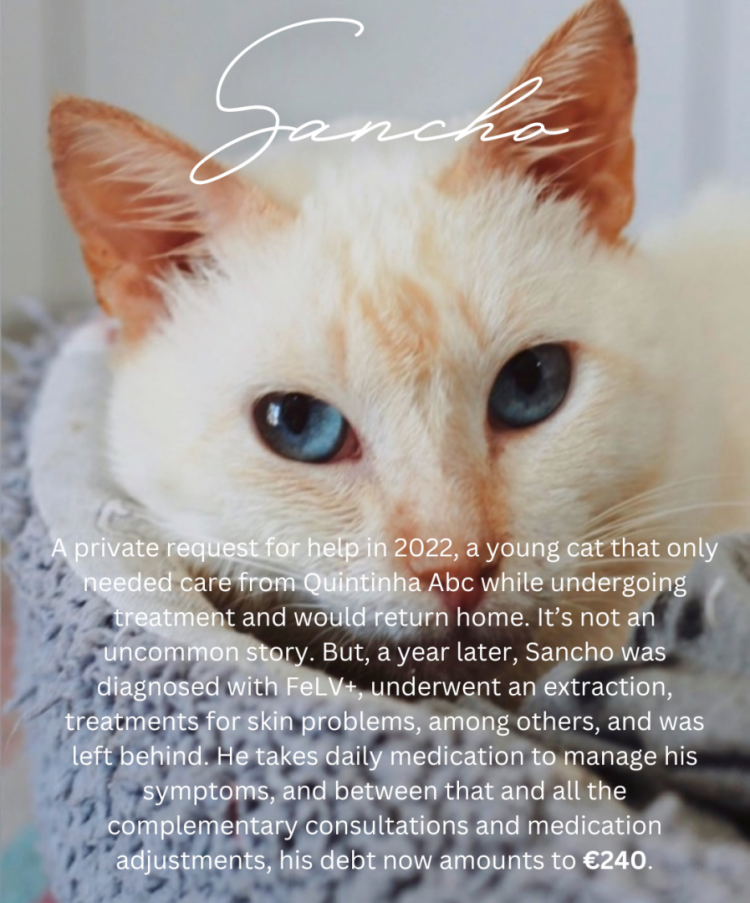 And then we have those who are still waiting for Quintinha Abc to have the space to deal with them, like the cat Cereja whose budget of €300 for a TAC is something that is currently not possible, given all the current expenses and remaining debts.