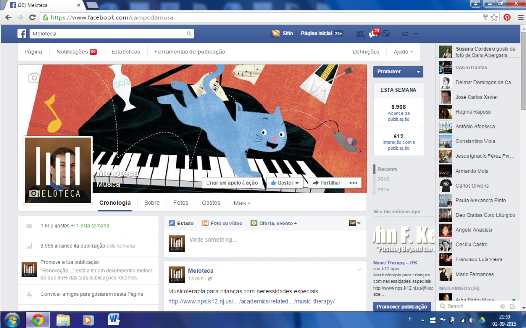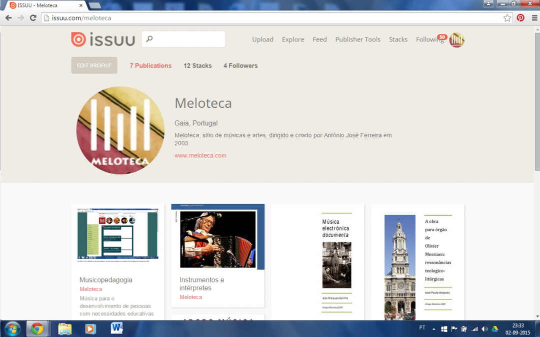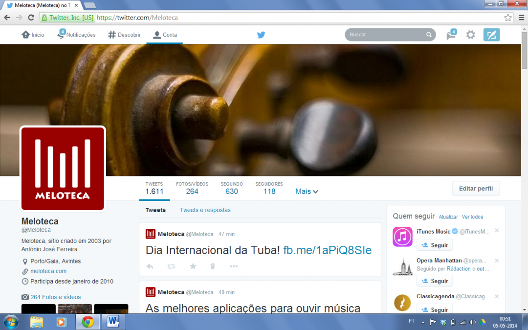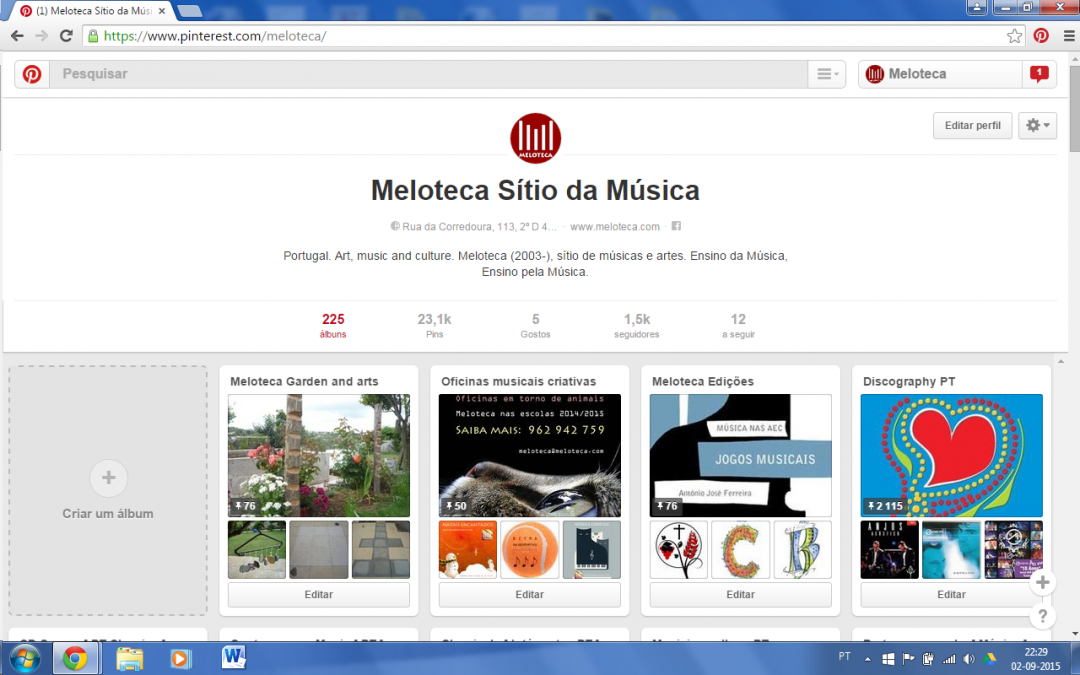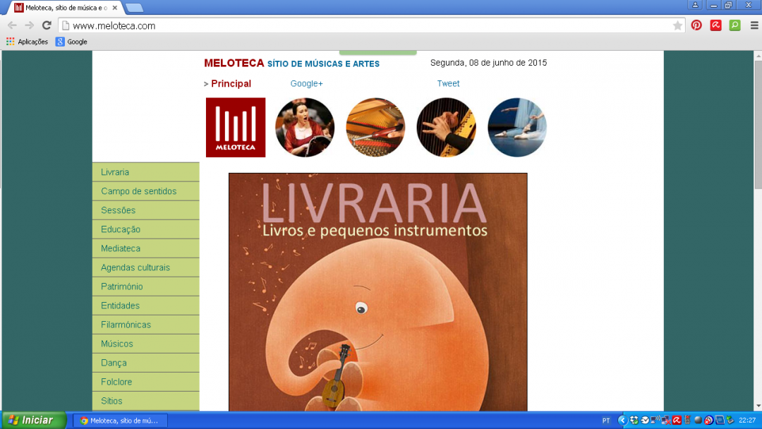 Meloteca is a portuguese website about Music, created in 2003 by António José Ferreira. It provides lots of sections about music, arts, education, culture and musical sciences. This music website links a network of thousands of portuguese musicians, composers, singers, conductors, instrument makers, teachers, dancers, managers. It provides contacts and information about instituts, publishers, labels, museums, festivals, schools and music competitions.