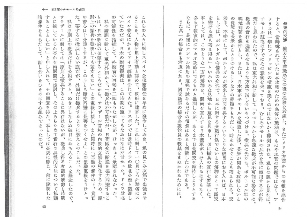 Written in 1950 by the Japanese Ambassador in Lisbon Morishima Morito (1896-1975), it is a book of memories that includes very personal and precise insights on the process of war declaration from Japan to the US and meetings that the Japanese diplomat had with António de Oliveira Salazar, the Portuguese President of the Council of Ministers, concerning the occupation of Timor by Japanese troops. This section certainly has a particular interest to Portugal, as it will stimulate a reflection on political and military strategies hitherto unknown due to the fact that this text has never been translated to any language and remains only accessible to Japanese speakers.