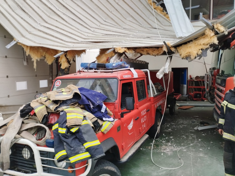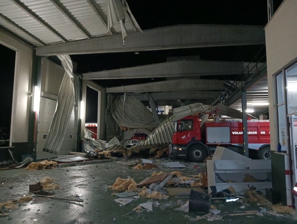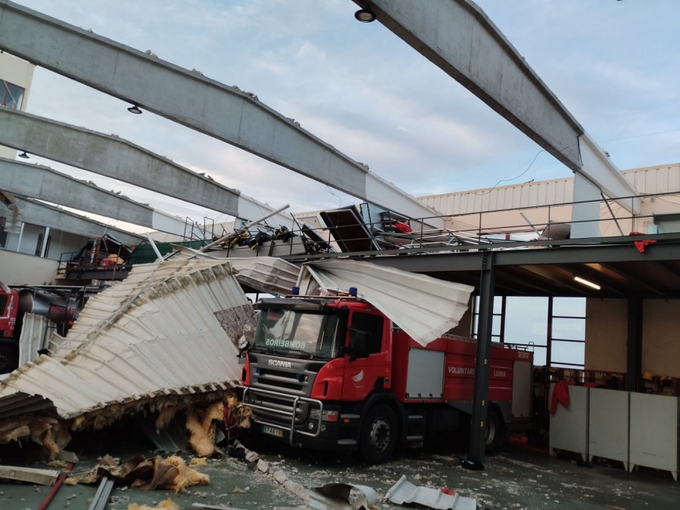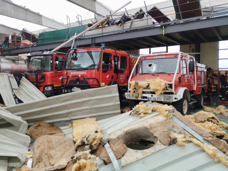 On January 28th, the collapse of the roofs and gates of the vehicle parking areas at our barracks (Headquarters in Leiria and Detached Company in Monte Redondo) caused significant damage to the rescue vehicles, including broken windows and damage to the vehicles' structure.