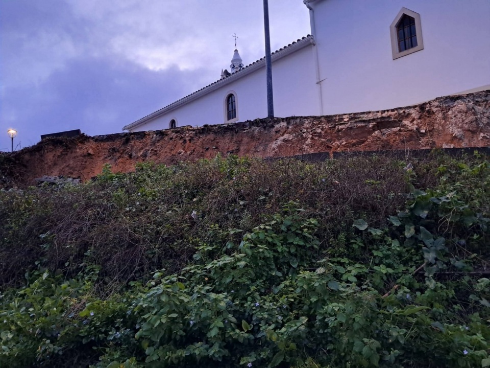 Recently, one of the churchyard's retaining walls, measuring 41m in length and 2m in height, collapsed due to the various severe weather events that occurred this winter. The current situation represents a risk to all who frequent the space, especially during celebrations and events, and also a risk to the preservation of the foundations of one of the chapel's walls.