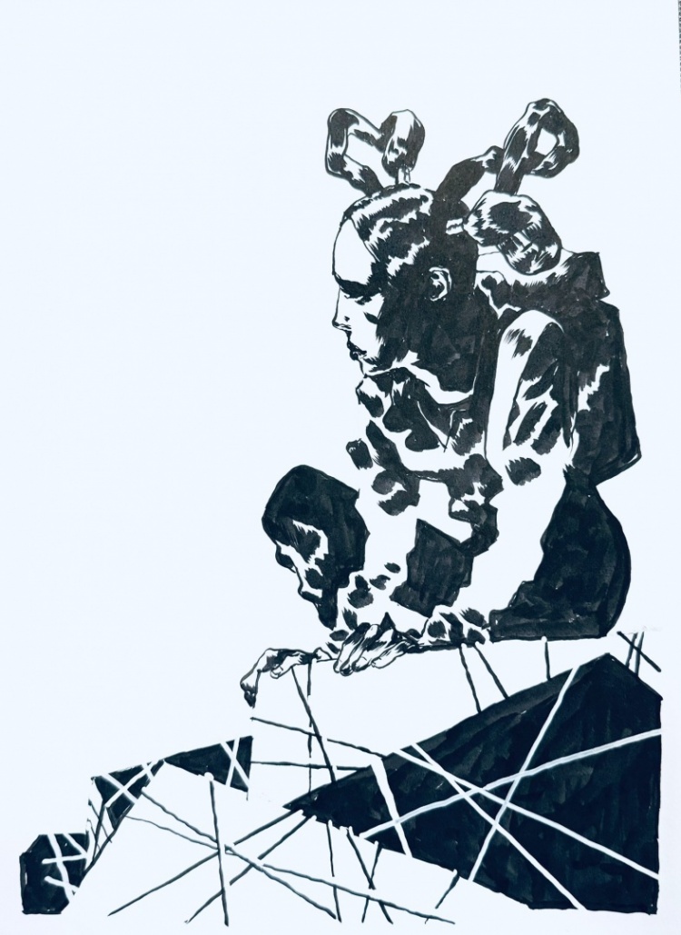 We're opening the publisher's treasure chest. Our authors created sketches (drawings) for this campaign. Purchase Umbra Issue 5 and get a signed original of your choice. Art by Marta Teives. Blue pencil and pen on paper. Size: A4.