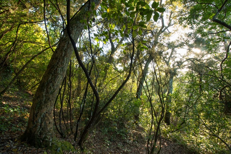 Nas zonas mais secas e expostas desenvolvem-se sobreiros de grande porte.