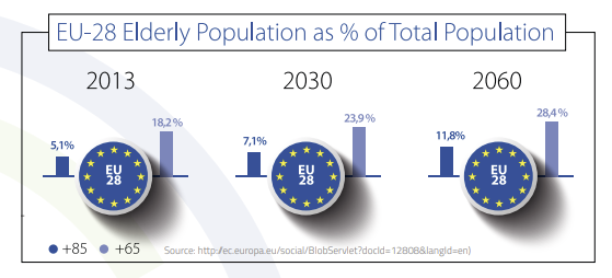 A longevidade e a queda na natalidade está a fazer com que a Europa seja uma das comunidades com população mais idosa. Até 2060, 155 milhões de Europeus – 30% do toda a população Europeia – está com 65 anos ou mais. De acordo com estas estimativas, até 2060, 30% das pessoas com mais de 65 anos (cerca de 45 milhões) terá pelo menos uma deficiência que os impede terem uma vida normal.