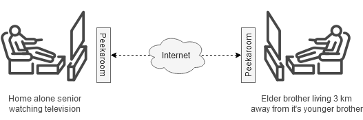 O nosso objetivo é criar um dispositivo que seja o mais simples possível de utilizar, procurando criar paralelismos com as atividades do dia-a-dia com as quais todos estamos familiarizados. Podemos ligar a qualquer fornecedor de canais (TV digital, satélite, leitor de DVDs, etc) e a saída de vídeo (TV ou projetor) e no final entre ambos o dispositivo Peekaroom. O Peekaroom só necessita de se ligar à energia e ao cabo de internet (sendo que, existe a opção de WiFi).