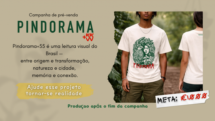 Este projeto nasce do desejo de criar uma marca independente que traduz a brasilidade de forma autêntica, através de ilustração, design e cultura. O primeiro drop da Pindorama+55 traz estampas originais que misturam elementos naturais, simbólicos e urbanos, refletindo a complexidade e a beleza do Brasil. Esta campanha existe para viabilizar a primeira produção das camisetas. Todas as peças serão produzidas apenas após o financiamento coletivo, garantindo um processo consciente, limitado e com propósito. Ao apoiar, não estás apenas a comprar uma peça — estás a participar do nascimento de uma marca, ajudando a transformar uma ideia em algo real. Cada apoio, de qualquer valor, ajuda a tornar este projeto possível.