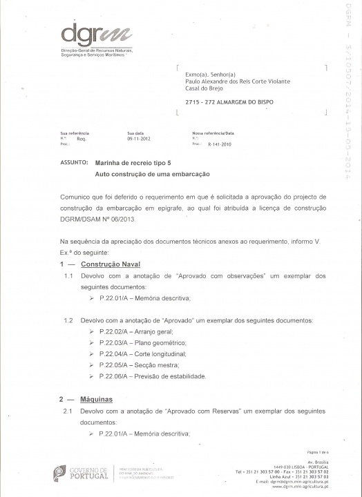 O projecto de engenharia deu entrada no instituto marítimo portuário sendo posteormente aprovado pela DGRM em 2013.