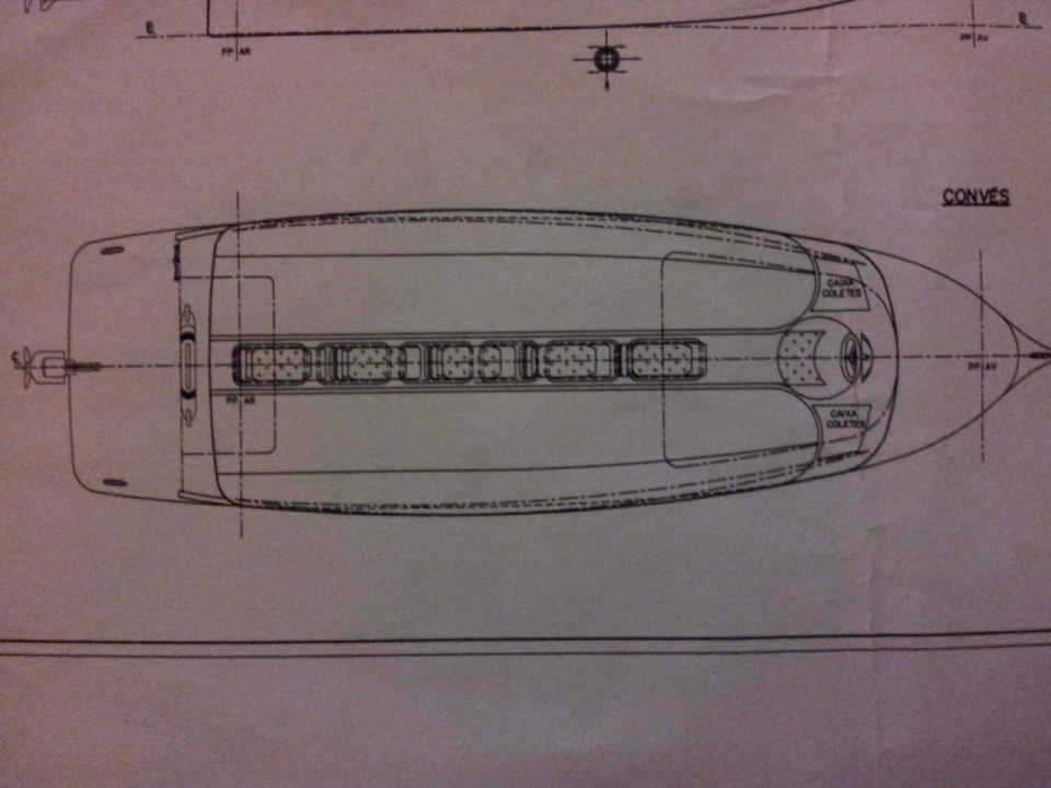 Fabricado em fibra de vidro tem um comprimento de 680cm 2000w de painéis solares 800 w de energia eólica, 1100 amperes de baterias gel, 3 motores eléctricos Minn Kota, controlo por volante ou comando à distancia GPS ou manual e equipamento de mergulho com capacidade para 6 pessoas.