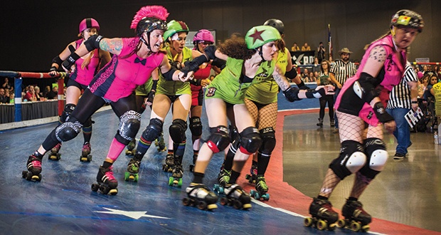 Roller Derby é um desporto sobre patins, formado maioritariamente por mulheres.