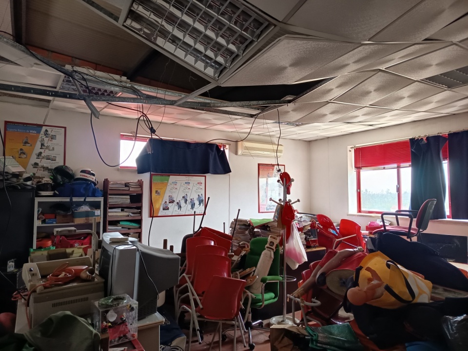 No dia 28 de janeiro a tempestade destruiu 100% do telhado do nosso quartel-sede. Os ventos ciclónicos destruiram mobiliário e equipamento no interior e os detritos projetados danificaram a maioria dos veículos de emergência. No interior, a ação da chuva no dia seguinte destruiu equipamentos informáticos, mobiliário e documentação.