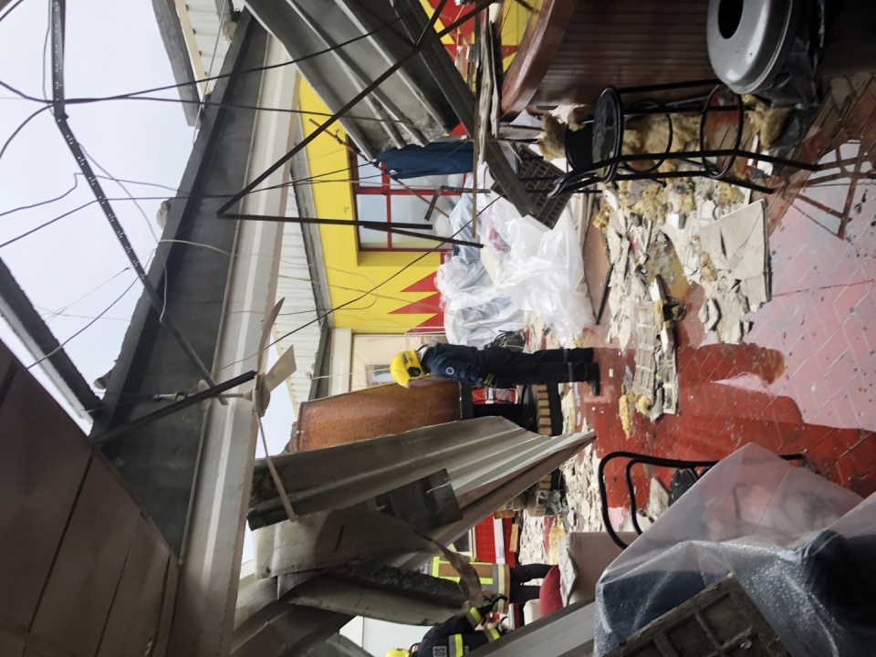 On January 28, the storm destroyed 100% of the roof of our headquarters. Cyclonic winds destroyed furniture and equipment inside, and the projected debris damaged most of the emergency vehicles. Inside, the rain the next day destroyed computer equipment, furniture, and documentation.